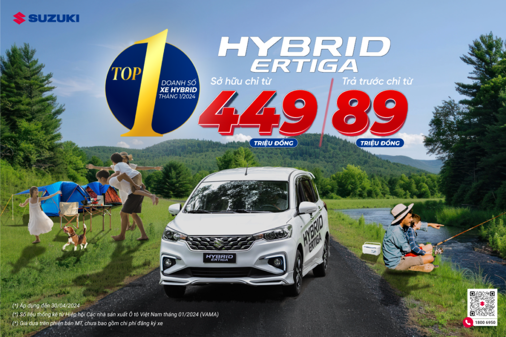 Tháng 4/2024, Suzuki Vinh Nghệ An áp dụng mức giá bán siêu ưu đãi, chỉ từ 449 triệu cho Hybrid Ertiga. Khách hàng chỉ cần trả trước 89 triệu để nhận ngay mẫu xe Hybrid bán chạy nhất tháng đầu năm 2024.